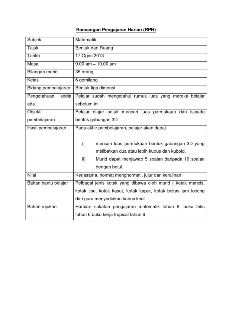 Rancangan Pengajaran Harian Mte Tahun 6 Bentuk Dan Ruang Pdf